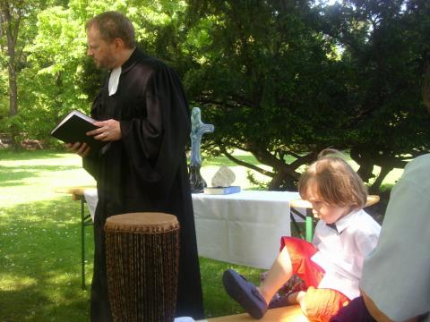 Der erste Gottesdient 2010 wurde noch in der katholischen Pfarrkirche gefeiert. 2012 war das Wetter so unbeständig, dass wir in den Schuppen ausgewichen sind. 2013 war dann der erste Gottesdienst richtig im Grünen. So unterschiedlich wie die Vorjahre auch waren, eines hatten wir immer: Es war jedes Mal ein fröhliches Miteinander! Am besten packen Sie einfach Ihre Sachen, nehmen etwas zu essen mit und kommen zu uns!